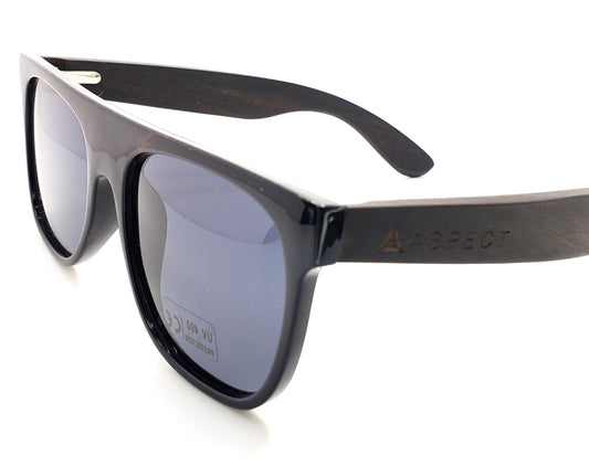 ASPECT Sunglasses: Handmade Ebony Wood Arms,Black Frame