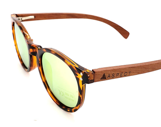 ASPECT Sunglasses: Handmade Rosewood Arms,Turtle Frame